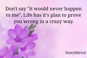 Don't say "it would never happen to me". Life has it's plan to prove you wrong in a crazy way.
