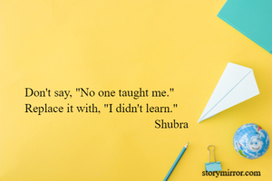 Don't say, "No one taught me." Replace it with, "I didn't learn." Shubra
