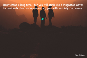 Don’t stand a long time , for you will stink like a stagnated water, instead walk along as long you can , you will certainly find a way.