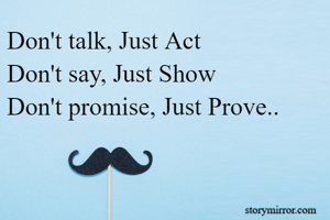 Don't talk, Just Act Don't say, Just Show Don't promise, Just Prove..