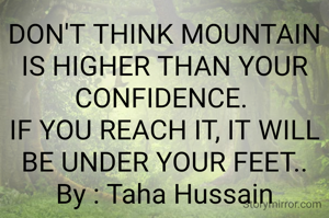 DON'T THINK MOUNTAIN IS HIGHER THAN YOUR CONFIDENCE. IF YOU REACH IT, IT WILL BE UNDER YOUR FEET.. By : Taha Hussain