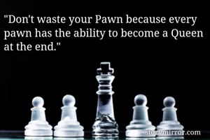 "Don't waste your Pawn because every pawn has the ability to become a Queen at the end."