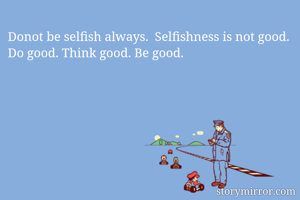 Donot be selfish always. Selfishness is not good. Do good. Think good. Be good.