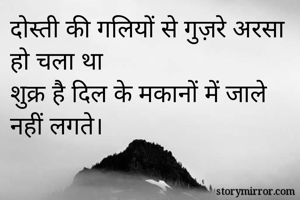 दोस्ती की गलियों से गुज़रे अरसा हो चला था शुक्र है दिल के मकानों में जाले नहीं लगते।