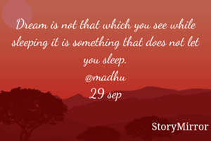 Dream is not that which you see while sleeping it is something that does not let you sleep. @madhu 29 sep