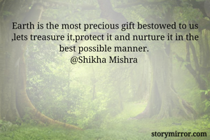 Earth is the most precious gift bestowed to us ,lets treasure it,protect it and nurture it in the best possible manner.