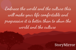 Embrace the world and the culture this will make your life comfortable and progressive it is better than to shun the world and the culture