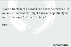 Even a fraction of a second can never be reversed. If we loose a second, we might loose an opportunity as well. Time says, "Be there in time".