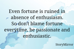 Even fortune is ruined in absence of enthusiasm. So don't blame fortune everytime, be passionate and enthusiastic.