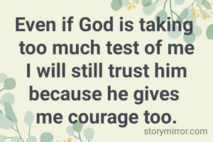 Even if God is taking too much test of me I will still trust him because he gives me courage too.