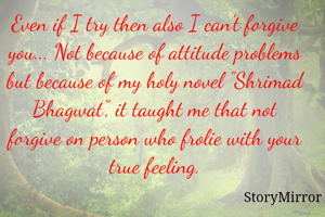 Even if I try then also I can't forgive you... Not because of attitude problems but because of my holy novel "Shrimad Bhagwat", it taught me that not forgive on person who frolie with your true feeling.