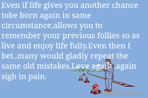 Even if life gives you another chance tobe born again in same circumstance,allows you to remember your previous follies so as live and enjoy life fully.Even then I bet..many would gladly repeat the same old mistakes.Love again ,again sigh in pain.