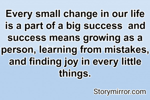 Every small change in our life is a part of a big success and success means growing as a person, learning from mistakes, and finding joy in every little things.