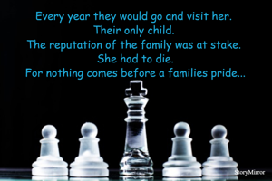 Every year they would go and visit her. Their only child. The reputation of the family was at stake. She had to die. For nothing comes before a families pride...