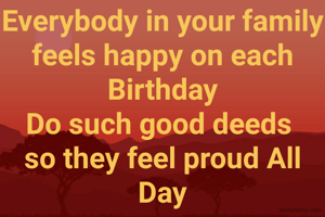 Everybody in your family feels happy on each Birthday Do such good deeds so they feel proud All Day