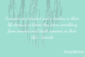 Everyone is a student and a teacher in their life because at times they learn something from someone and teach someone in their life.- Srinidi