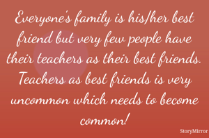 Everyone's family is his/her best friend but very few people have their teachers as their best friends. Teachers as best friends is very uncommon which needs to become common!