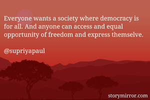 Everyone wants a society where democracy is for all. And anyone can access and equal opportunity of freedom and express themselve.