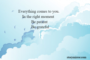 Everything comes to you. In the right moment Be patient Be grateful
