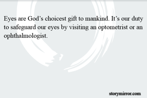 Eyes are God’s choicest gift to mankind. It’s our duty to safeguard our eyes by visiting an optometrist or an ophthalmologist.