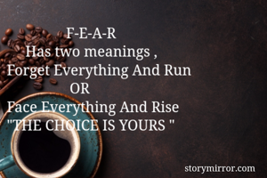 F-E-A-R Has two meanings , Forget Everything And Run OR Face Everything And Rise "THE CHOICE IS YOURS "