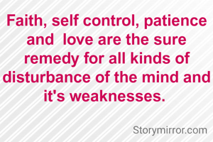 Faith, self control, patience and love are the sure remedy for all kinds of disturbance of the mind and it's weaknesses.