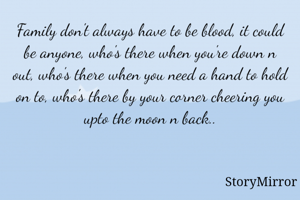 Family don't always have to be blood, it could be anyone, who's there when you're down n out, who's there when you need a hand to hold on to, who's there by your corner cheering you upto the moon n back..