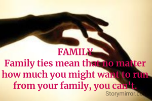 FAMILY Family ties mean that no matter how much you might want to run from your family, you can't.