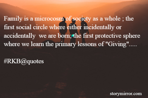Family is a microcosm of society as a whole ; the first social circle where either incidentally or accidentally we are born; the first protective sphere where we learn the primary lessons of "Giving"..... #RKB@quotes