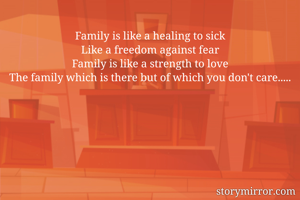 Family is like a healing to sick Like a freedom against fear Family is like a strength to love The family which is there but of which you don't care.....