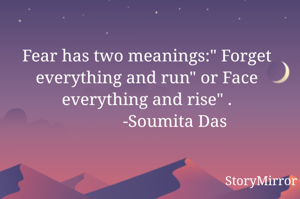 Fear has two meanings:" Forget everything and run" or Face everything and rise" . -Soumita Das