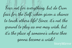 Fear not for everything, but do Own fear for the Self, when given a chance to touch others life! Since, it's not the ground to play as one may wish, but it's the place of someone's where thee gonna become a wish!