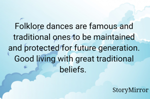 Folklore dances are famous and traditional ones to be maintained and protected for future generation. Good living with great traditional beliefs.