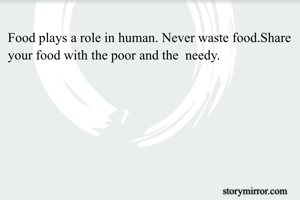Food plays a role in human. Never waste food.Share your food with the poor and the needy.