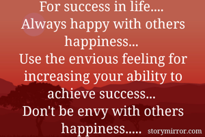 For success in life.... Always happy with others happiness... Use the envious feeling for increasing your ability to achieve success... Don't be envy with others happiness.....