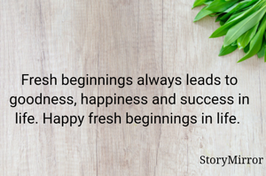 Fresh beginnings always leads to goodness, happiness and success in life. Happy fresh beginnings in life.