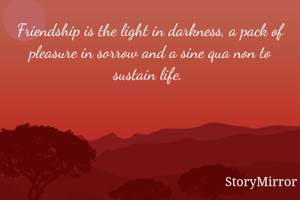 Friendship is the light in darkness, a pack of pleasure in sorrow and a sine qua non to sustain life.