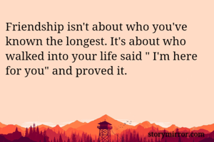 Friendship isn't about who you've known the longest. It's about who walked into your life said " I'm here for you" and proved it.