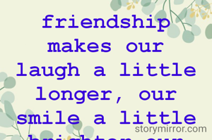 friendship makes our laugh a little longer, our smile a little brighter,our life a little better.