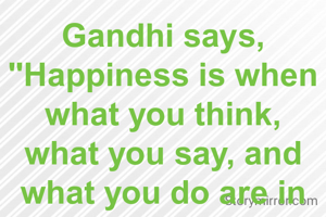 Gandhi says, "Happiness is when what you think, what you say, and what you do are in harmony."