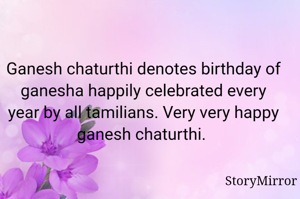 Ganesh chaturthi denotes birthday of ganesha happily celebrated every year by all tamilians. Very very happy ganesh chaturthi.