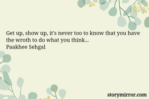 Get up, show up, it's never too to know that you have the wroth to do what you think...