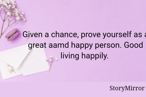 Given a chance, prove yourself as a great aamd happy person. Good living happily.