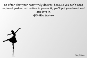 Go after what your heart truly desires, because you don't need external push or motivation to pursue it; you'll put your heart and soul into it. @Shikha Mishra