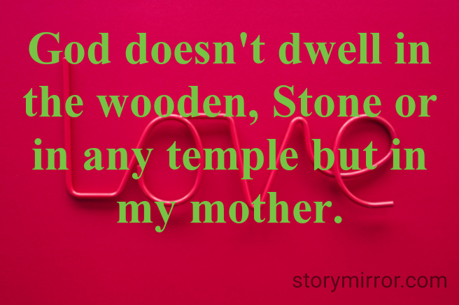God doesn't dwell in the wooden, Stone or in any temple but in my mother.