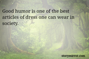 Good humor is one of the best articles of dress one can wear in society.