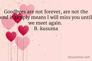 Goodbyes are not forever, are not the end it simply means I will miss you until we meet again. B. kusuma