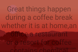 Great things happen during a coffee break whether it is at home,an office,a restaurant or a resort for coffee contains chemical called caffeine which causes mood elevation and relaxation much required for each one of us but ofcourse in limited quantities.