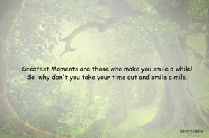 Greatest Moments are those who make you smile a while! So, why don't you take your time out and smile a mile.