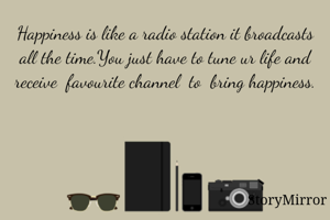 Happiness is like a radio station it broadcasts all the time.You just have to tune ur life and receive favourite channel to bring happiness.